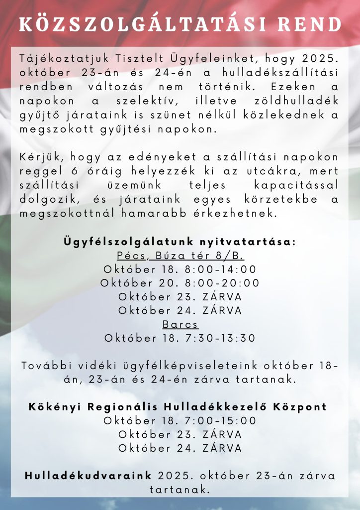 Hulladékkezelés, edény- és zsák értékesítés, egyéb szolgáltatások díjai